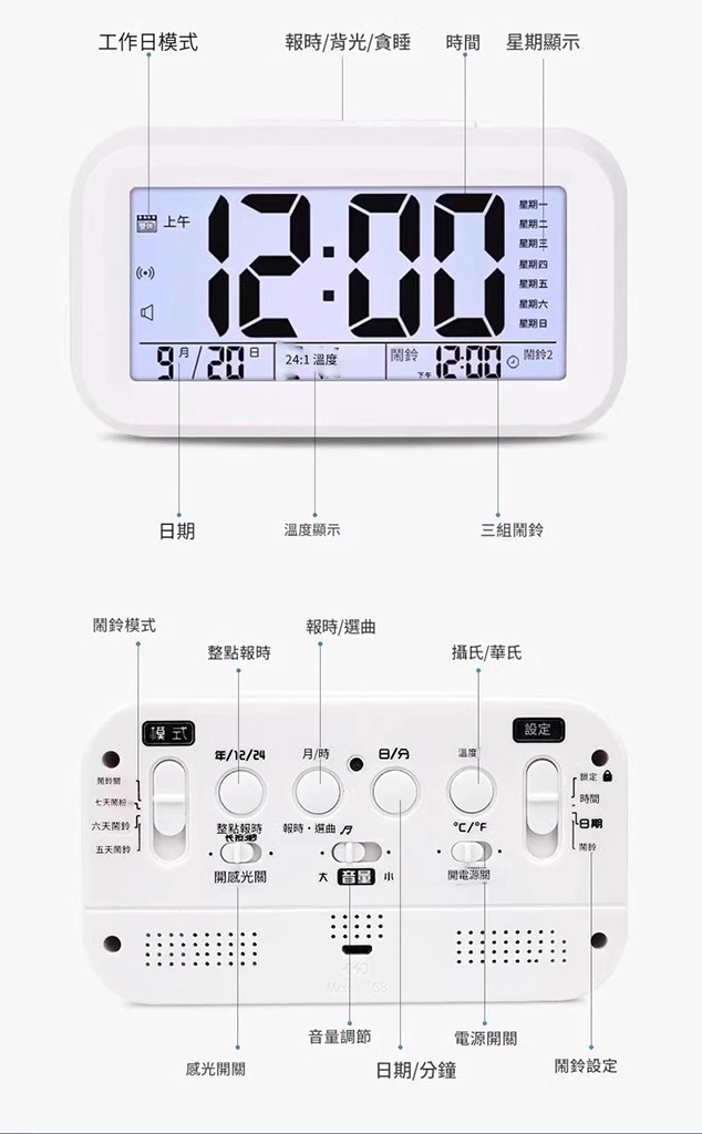 電子鬧鐘床頭學生夜光多功能專用數位智慧鬧鐘宿舍電子時鐘