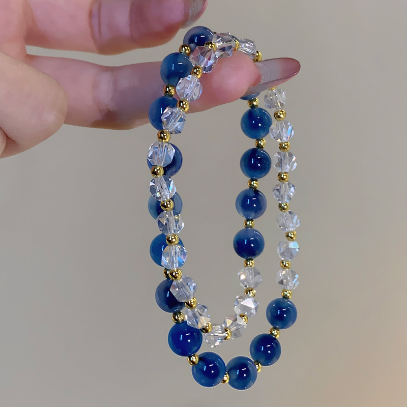 護身符_輕奢招財保平安瑪瑙透明水晶雙圈時尚手鍊精緻夢幻藍手串