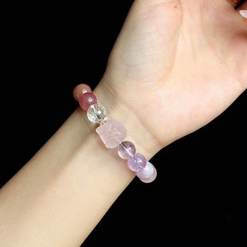 馬粉醒獅貔貅小熊多寶天然水晶串珠手鏈女時尚高級感海藍寶紫天然水晶手串