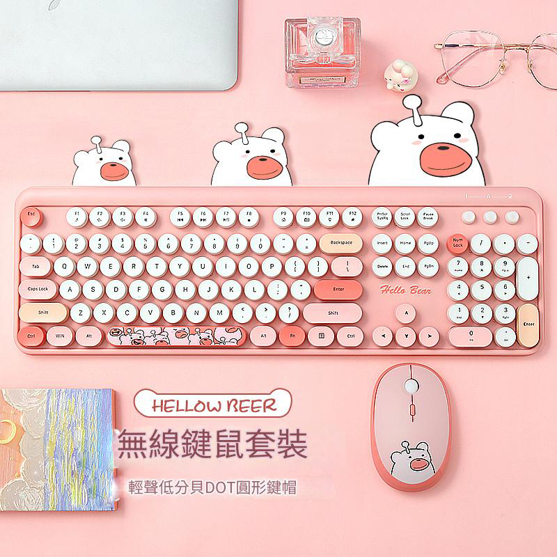 摩天手mofii 無線鍵盤滑鼠套裝 靜音女生可愛卡通 辦公家 用筆電 台式桌上型電腦 繁體注音 鍵盤 可愛兔子滑鼠